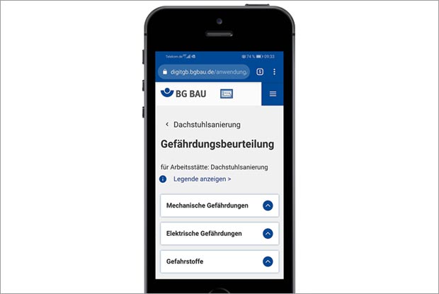 Gefährdungsbeurteilung mithilfe der App DigitGB: Sie wurde von der BG BAU entwickelt und gibt bereits viele Auswahlmöglichkeiten vor.