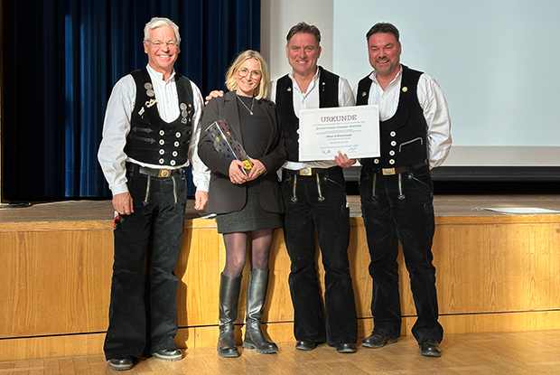 ...und Hermann Lauchs, Obermeister der Zimmerer-Innung Ansbach-Westmittelfranken, die Silberne Ehrennadel des Bayerischen Zimmererhandwerks.