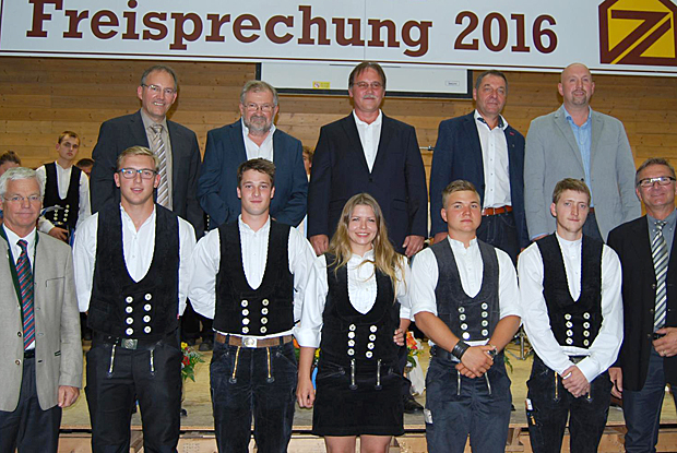 Präsident Aicher sprach die 57 jungen Zimmerer der Innungen Kitzingen, Aschaffenburg-Miltenberg-Obernburg, Schweinfurt-Haßberge und Würzburg von den Verpflichtungen der Lehrzeit frei. Die Feier endete mit dem traditionellen Zimmerer-Klatsch.