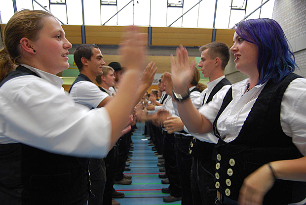 Ein Zimmerer-Klatsch durfte auf der unterfränkischen Freisprechungsfeier nicht fehlen.